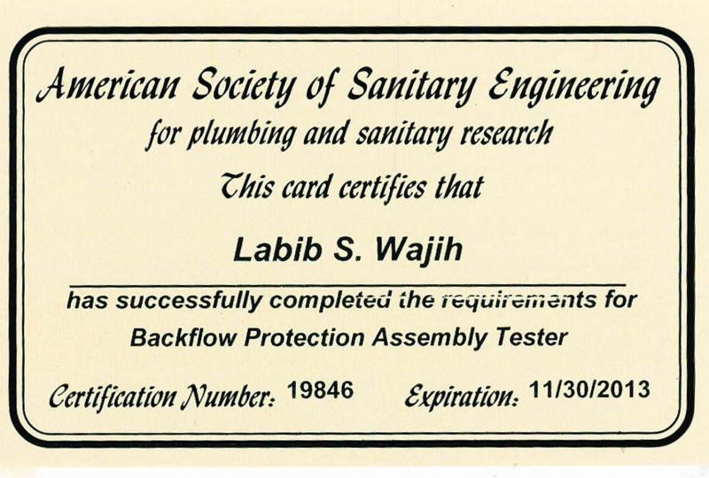 ASSE – American Society of Sanitary Engineering - Backflow Protection Assembly Tester - 11-2010